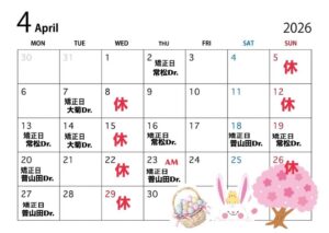 クリア歯科大阪院の4月の営業スケジュールにつきましてご案内いたします。